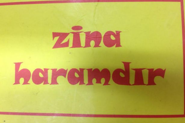 Anadolu Gençlik Derneğine bağlı olduğu belirtilen 'Gazze Bölgesi' isimli örgütlenmenin başlatmış olduğu bir 'kampanya' olduğu açıklanan kartvizitlerin bir tarafında 'Zina Haramdır' diğer tarafında ise 'Evlenin! Zina Haramdır' yazıyor.
